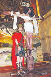 The Everett Immaculate Conception Church started a new tradition on Good Friday as hundreds of parishioners marched through the streets to honor the Station of the Cross in a public Passion Play. The huge crowd was somewhat unexpected, but was seen in the Parish as a sign that the tradition will continue. The event was coordinated and acted out by the Spanish ministry with English translation. Here, Jesus (played Christopher Ryan) is crucified by the Roman soldiers in the IC Church on Friday.