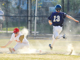 News Out by Independent Staff • May 14, 2015 • 0 Comments Everett first basemen Brian Lombardo (16) stretches all the way out to catch the ball and just narrowly get Winthrop’s Zach Fisher (13). While the Everett Chargers took down Malden last week in Glendale Park, they fell to Winthrop by one run.