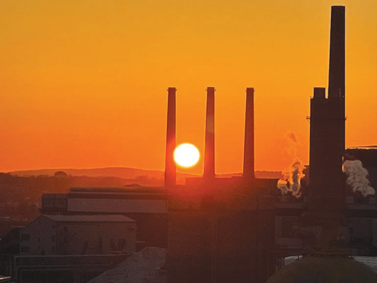The past week featured warmer weather and beautiful, much later sunsets. Here, the industrial area of Everett’s Lower Broadway is silhouetted against the orange-setting sun last Friday evening, March 26. The sun will not set before 7 p.m. from now until some point in September, according to the Farmer’s Almanac.
