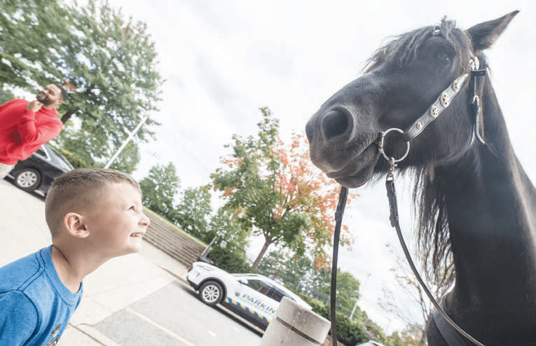 The City of Everett will be welcomed Retired U.S. Army Lt. Colonel Gerry Scott as he rides into Everett for a visit with his horse, Hercules. Jason LaMonica takes in the height of Hercules.