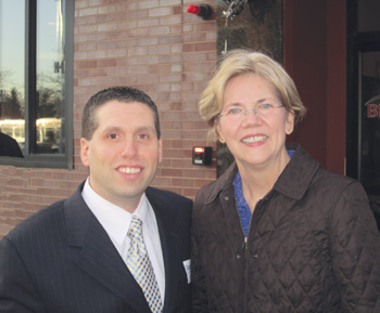 Senate candidate Elizabeth Warren and State Senator Sal DiDomenico are shown above during a walk around Everett’s downtown that Warren made with the senator last week. Warren has been campaigning hard against Senator Scott Brown. Warren has already made visits to many cities towns and neighborhoods since announcing her candidacy last summer.
