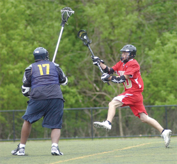 area. Everett is one of the first of a handful in the area to make the jump to lacrosse in the spring. Here, Everett’s Jason Papa