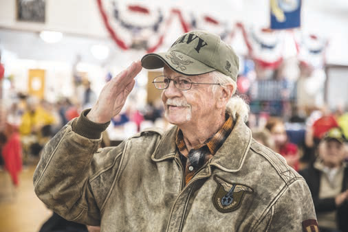 Vietnam War Veteran Philip Yebba salutes as Eleven chimes mark the 11th hour on the 11th day of the 11th month.